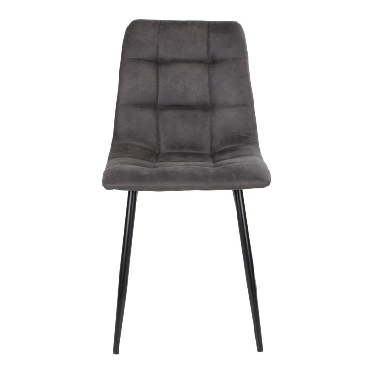 Munkebo spisebordstol med kraftig polstring på sæde og ryg. Stolen er betrukket med slidstærkt mørkegråt micofiber stof, og monteret på et sortlakeret metalstel.