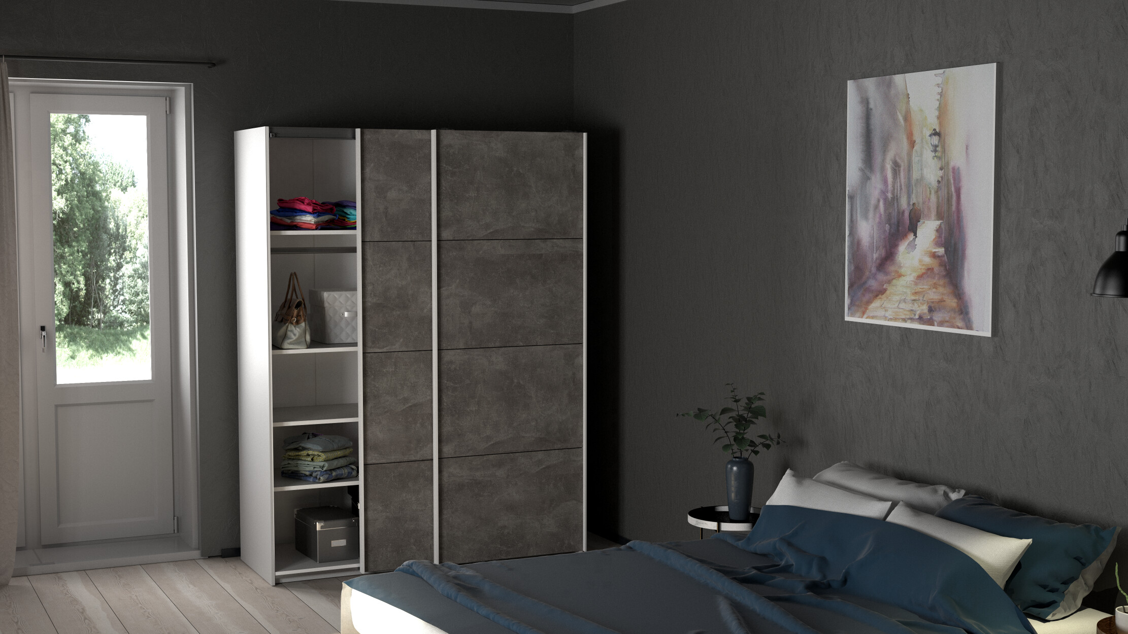 Trend 200 garderobeskab er med en højde på 200 cm et meget rummeligt skab, der udnytter loftshøjden i moderne hjem. Designet er helt stramt, med næsten usynlige samlinger af de 4 delte låger og greb med samme farve som resten af skabet.