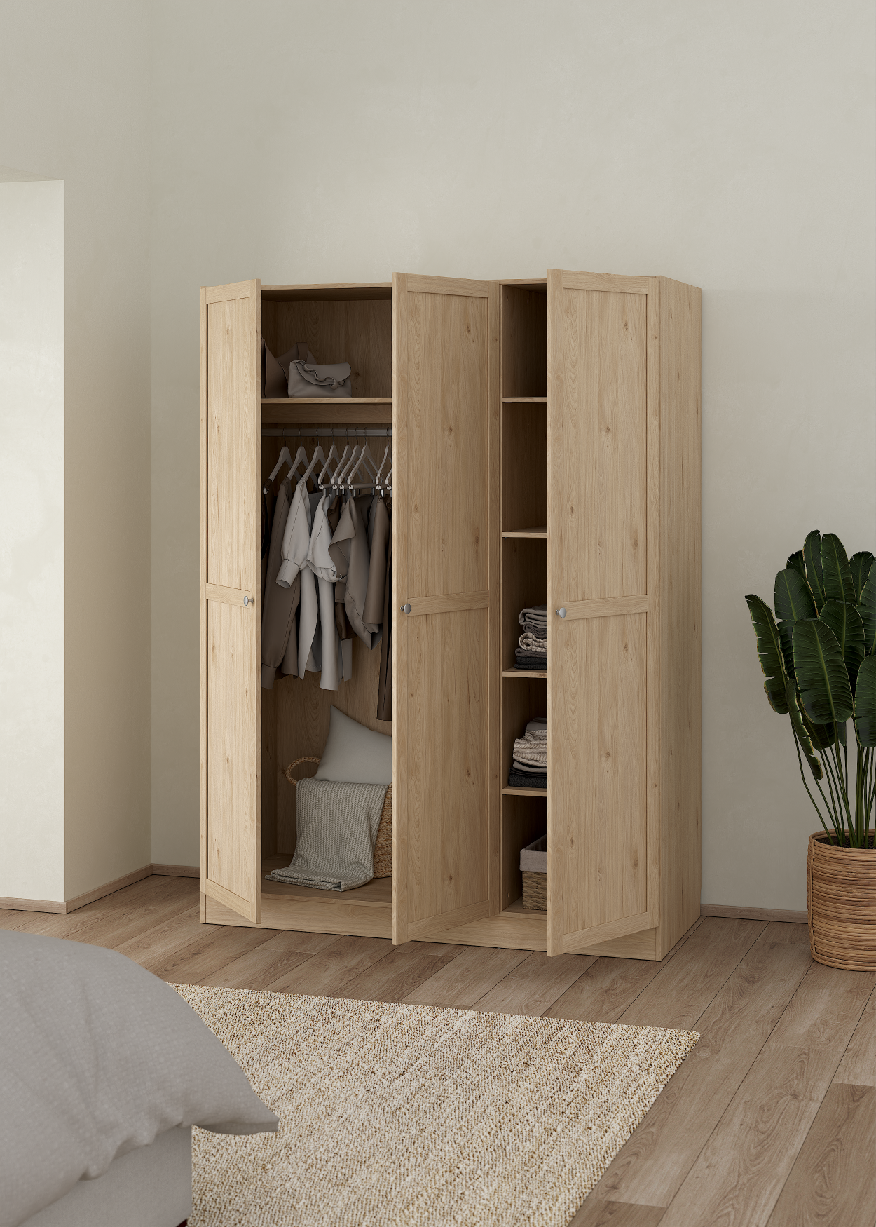 Garderobeskabet måler B: 147 cm, D: 61,69 cm, H: 200,1 cm.