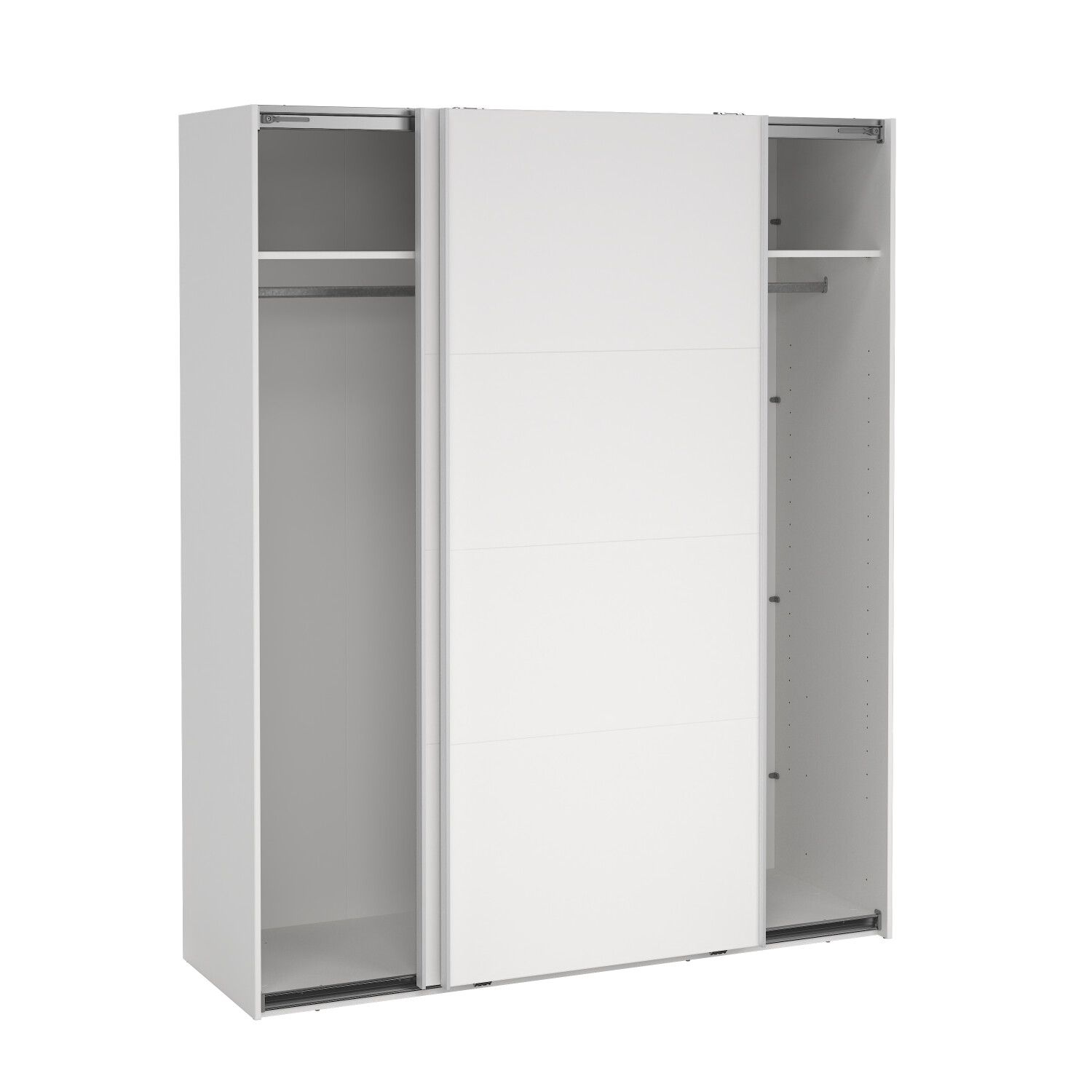 Smart garderobeskab har 2 meget rummelige skabe, som hver er indrettet med 1 hylde og 1 bøjlestang. Dørene er monteret på hjul og skinner, der får dem til at glide let og ubesværet. Et skab der optager et minimum af plads, samtidig med der er fri og nem adgang til indholdet. Dørene er delt i 3 eller 4 felter, det giver et flot udtryk. Korpus og låger er beklædt med folie som gir en flot finish, som er nem at rengøre og ikke kræver nogen former for vedligeholdelse.