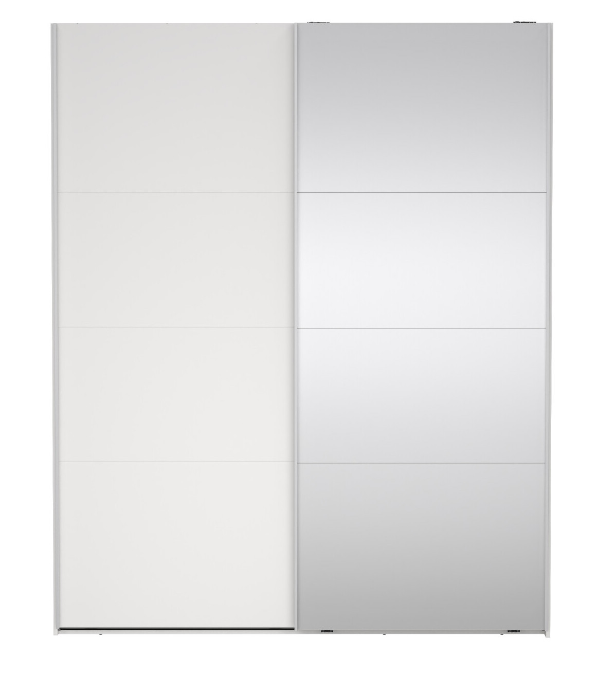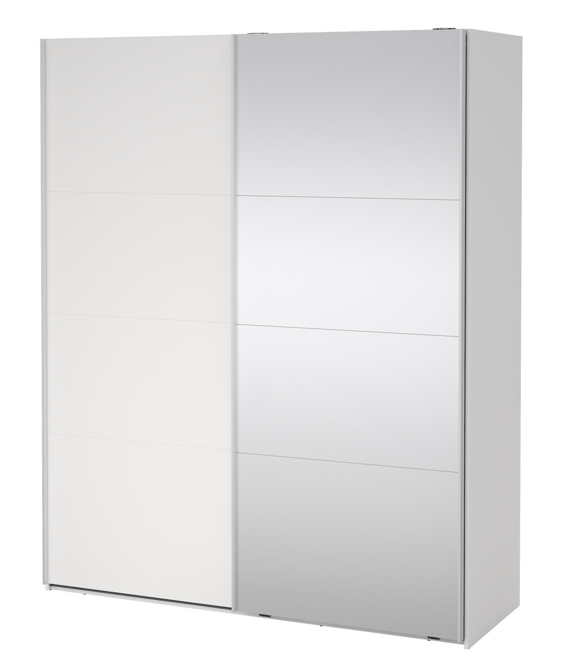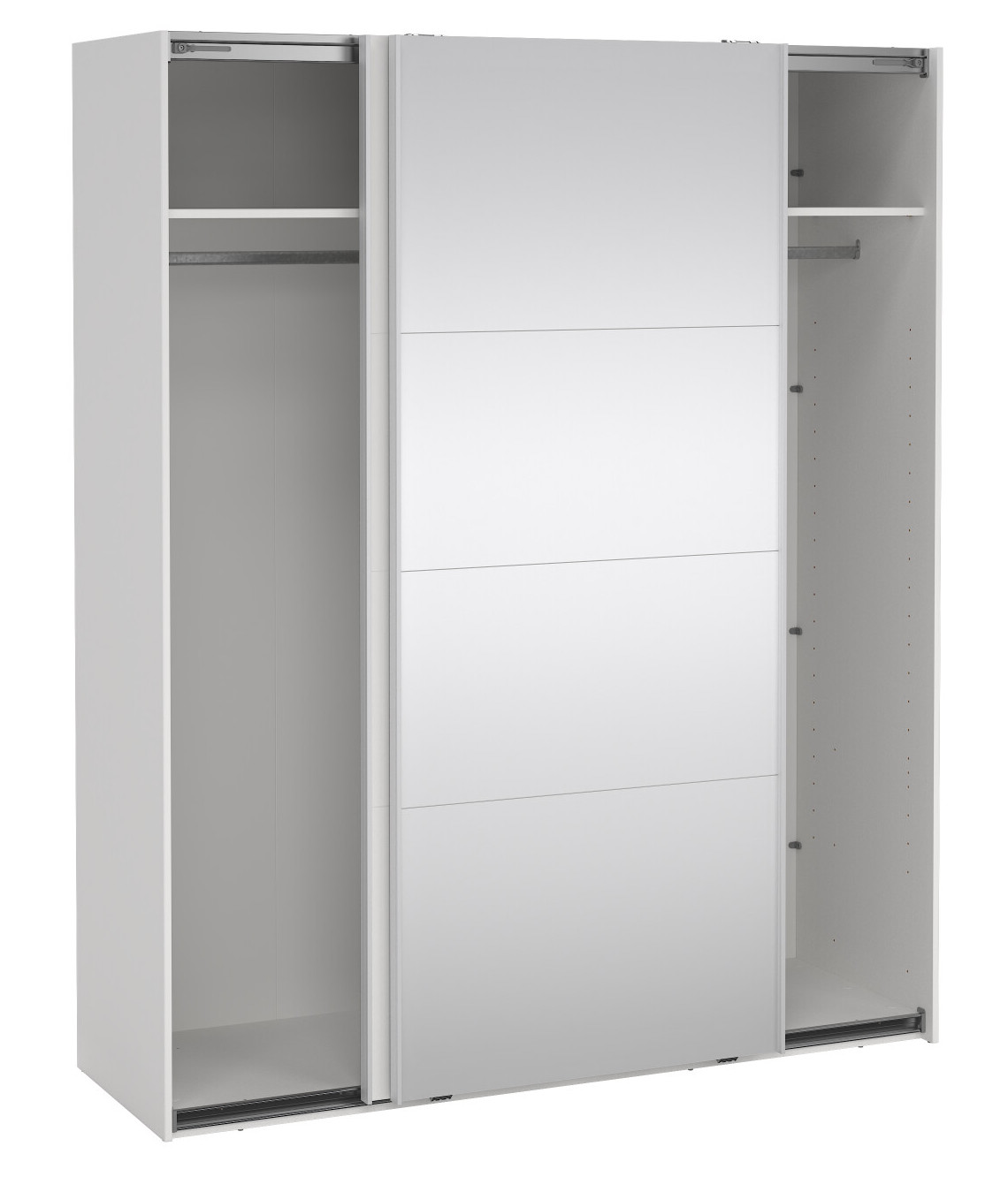 Smart garderobeskab har 2 meget rummelige skabe, som hver er indrettet med 1 hylde og 1 bøjlestang. Dørene er monteret på hjul og skinner, der får dem til at glide let og ubesværet. Et skab der optager et minimum af plads, samtidig med der er fri og nem adgang til indholdet. Dørene er delt i 3 eller 4 felter, det giver et flot udtryk. Korpus og låger er beklædt med folie som gir en flot finish, som er nem at rengøre og ikke kræver nogen former for vedligeholdelse.