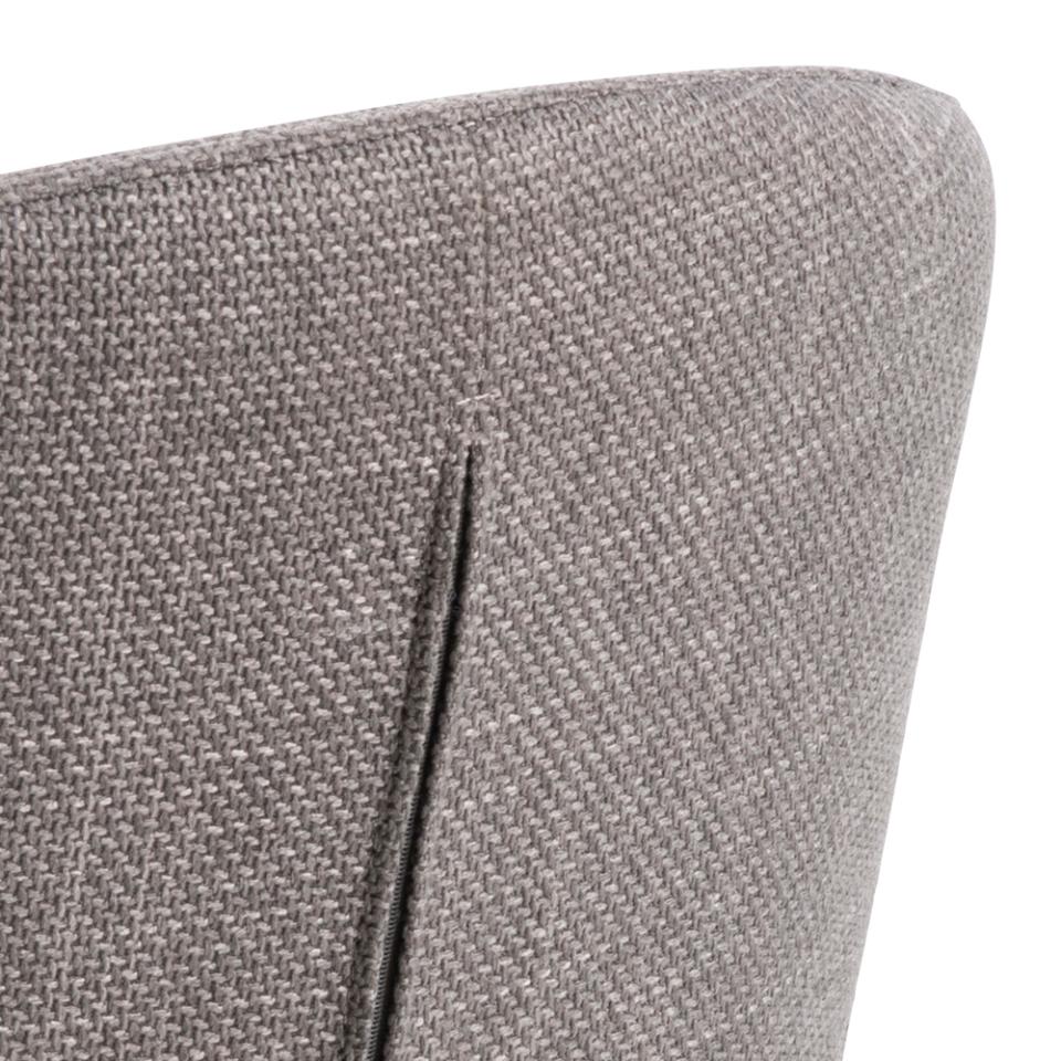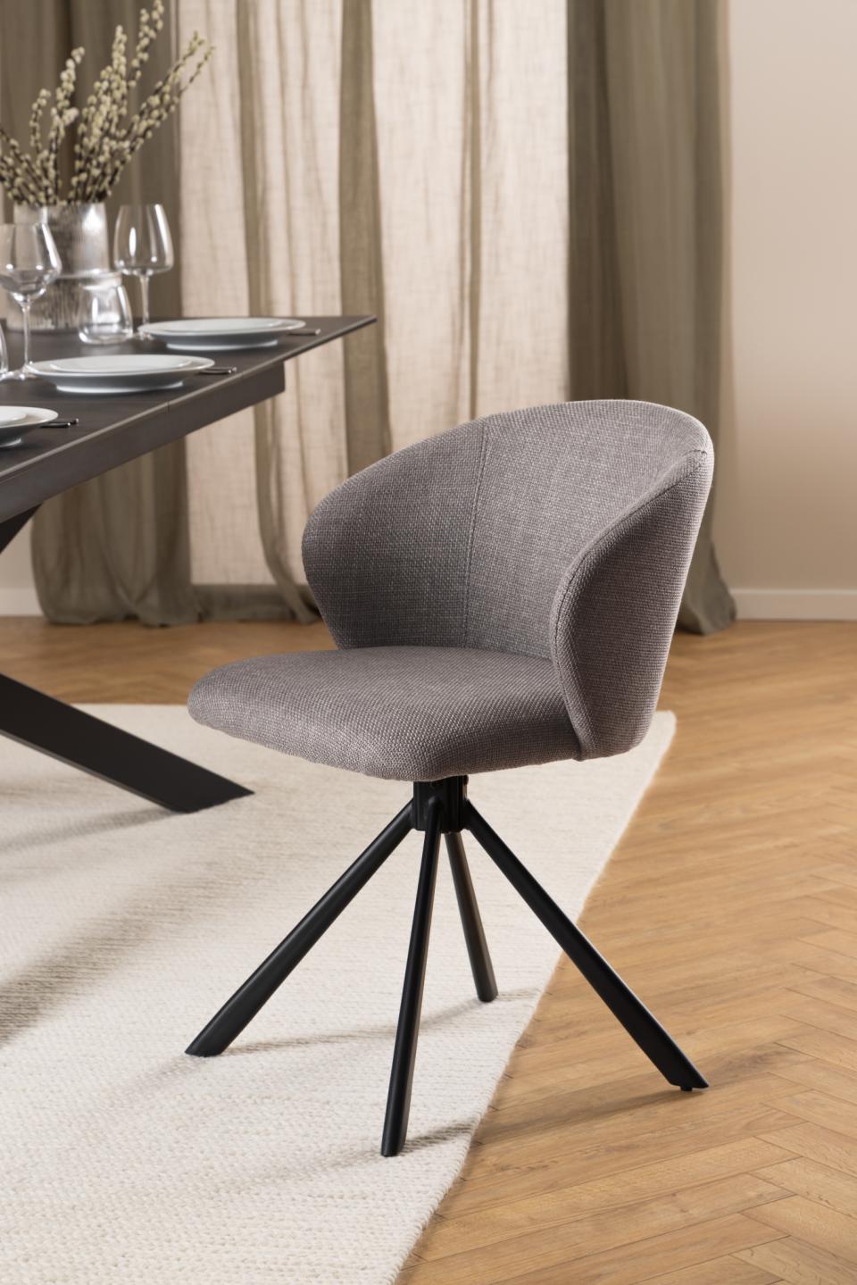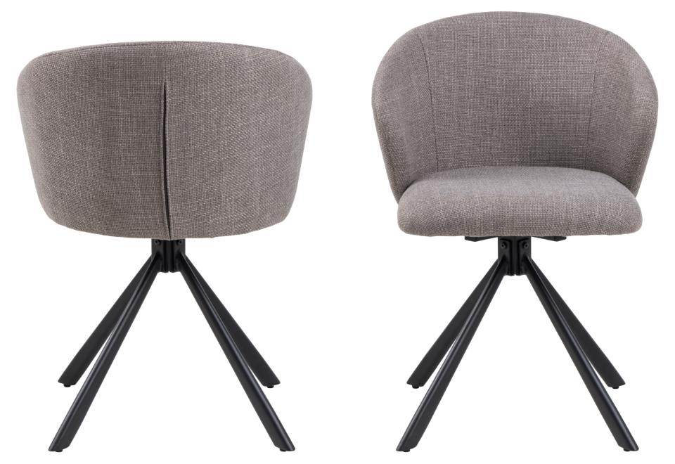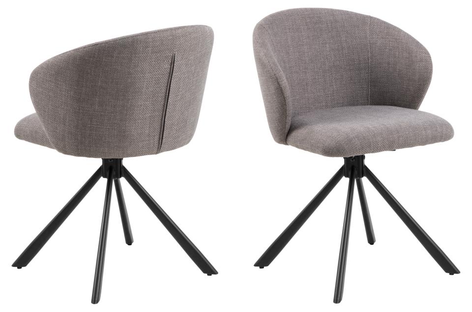 Pippi spisebordsstol har en særdeles god og behagelig siddekomfort, da sæde og ryg er polstret med et dejligt blødt lag skum og kraftigt møbeltekstil med en to farvet effekt i lysgrå og brun tone.