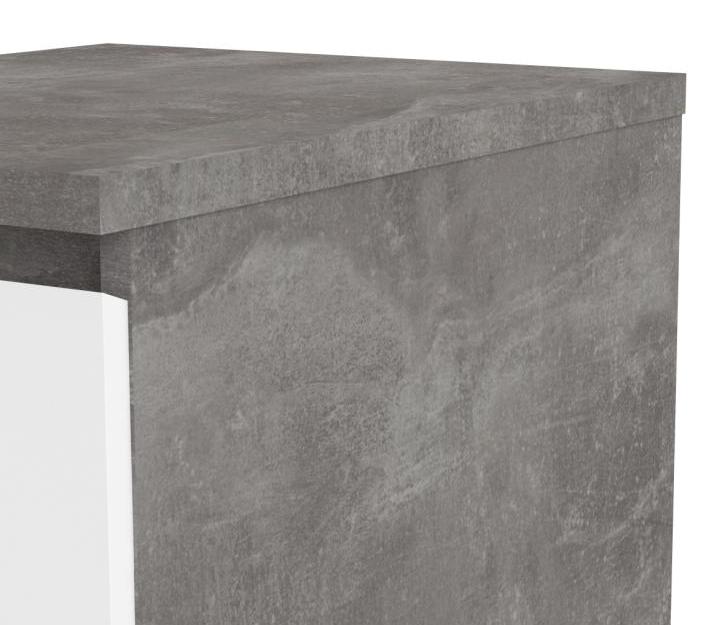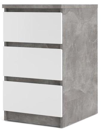 Nibe kommode leveres med beton look og 3 skuffer, fronten på alle 3 skuffer er i hvid højglans. Kommoden er produceret som en stilren kommode, der vil passe i langt de fleste hjem. Kommodens finish gør at den er nem at rengøre.