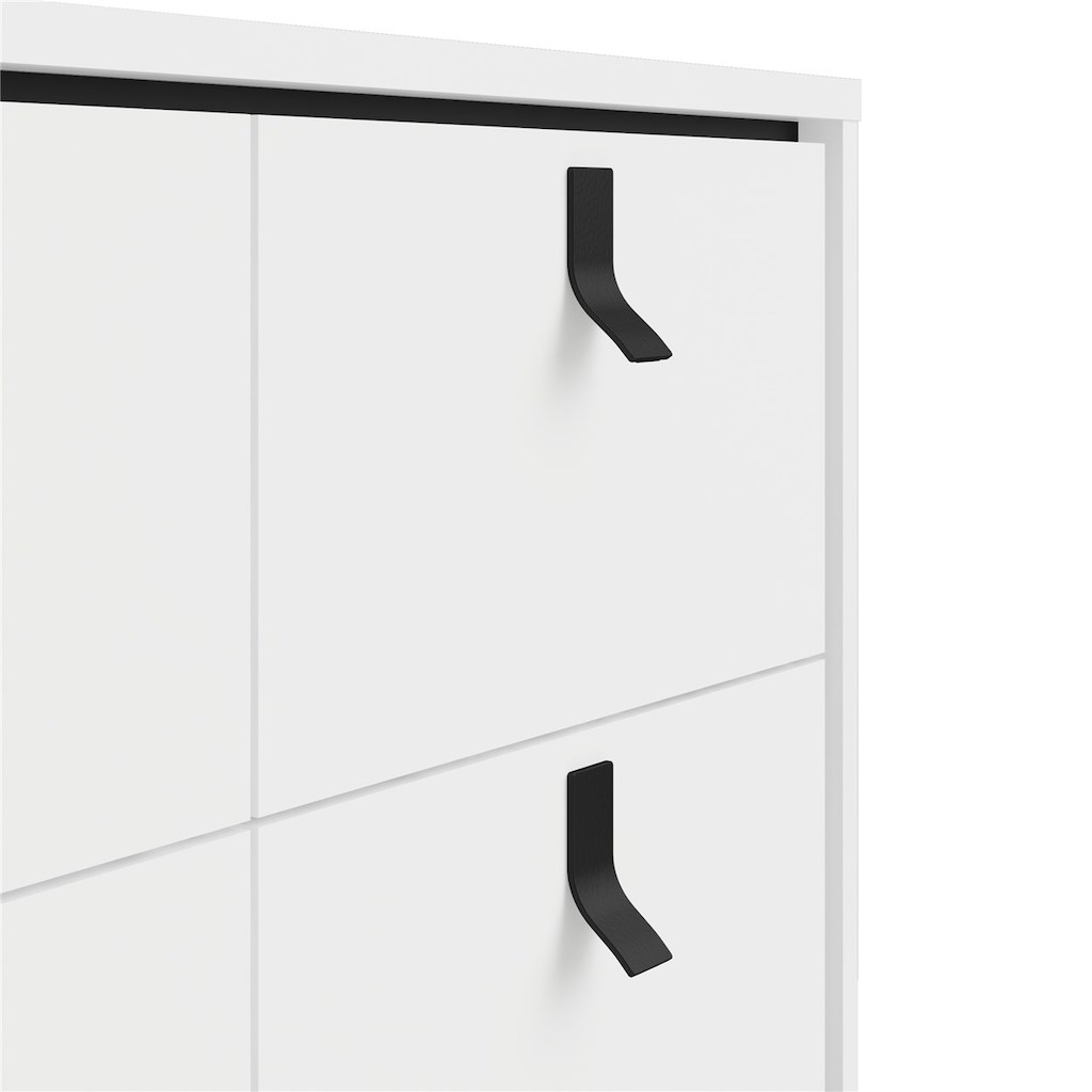 Garederobeskab med 3 døre, 4 hylder og 3 rumelige skuffer i flot mathvid finish. Klik på billedet for at se mere.