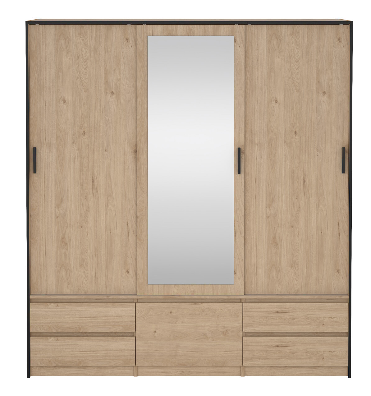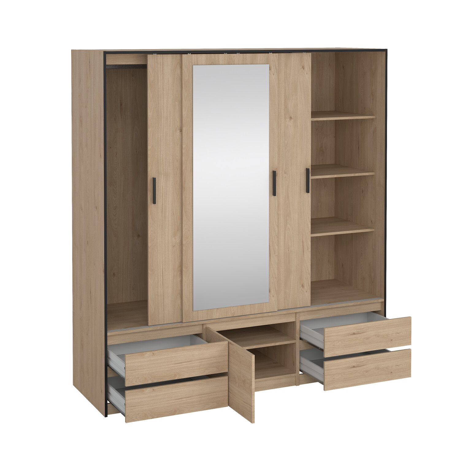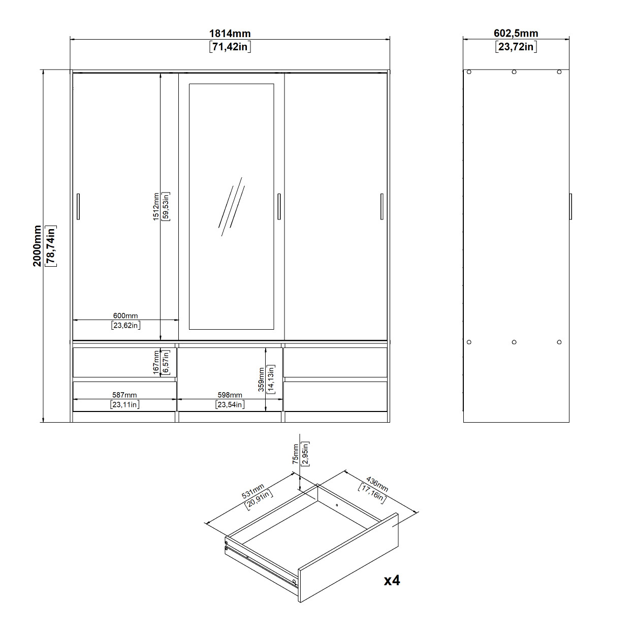 Garderobeskabet måler: H: 200,0 cm, B: 181,4 cm, D: 60,3 cm.