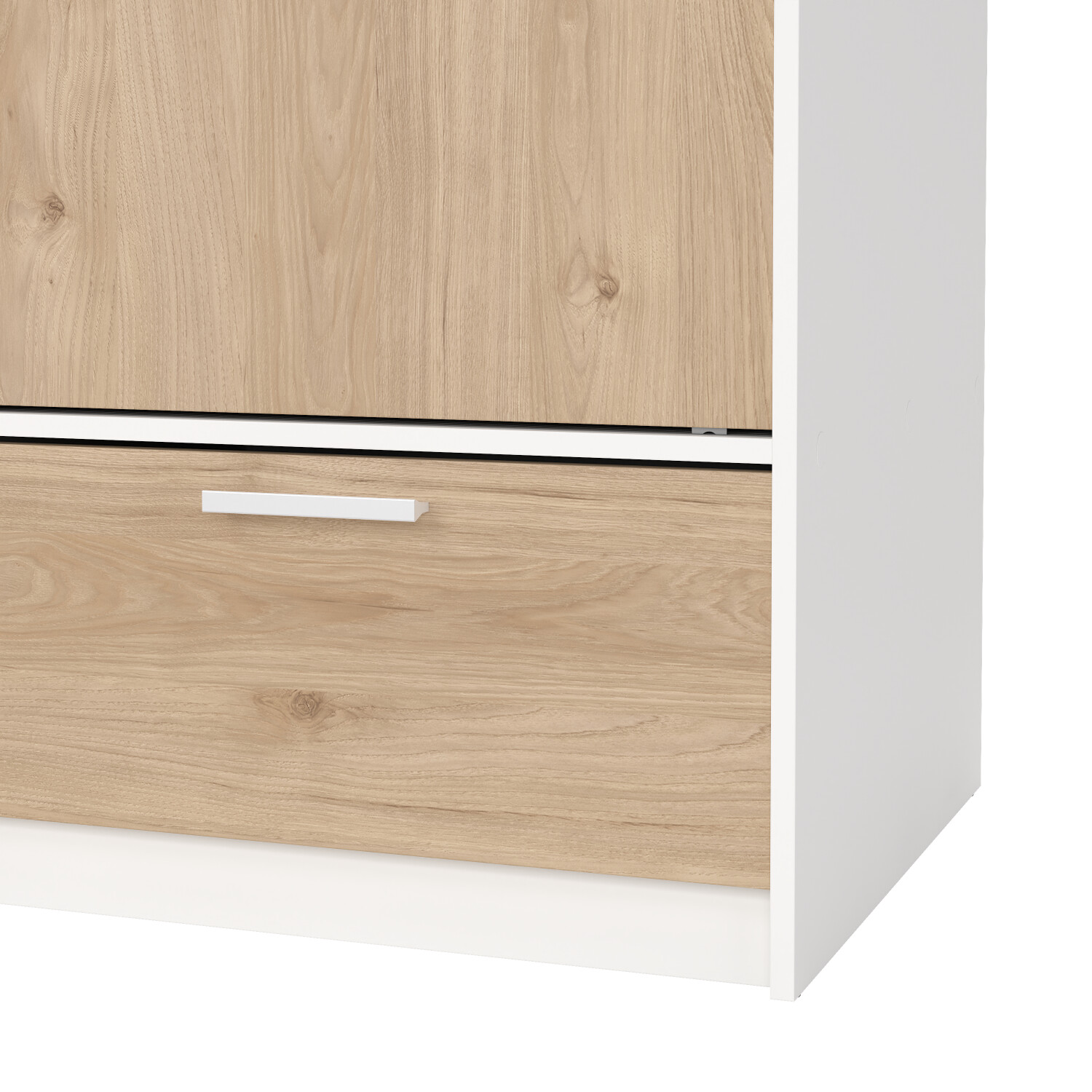 Garederobeskab med 2 døre, 4 rumelige skuffer i flot hvidt look. Klik på billedet for at se mere.