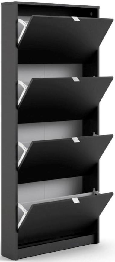 Askepot mat sort skoskab med 2 vippelåger og plads til 6 par sko.