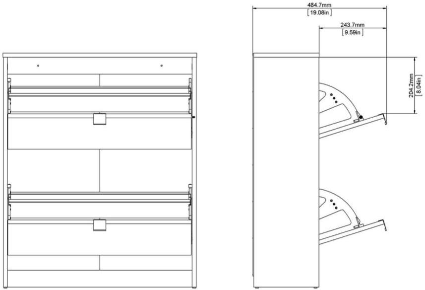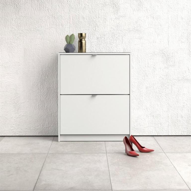 Askepot hvidt skoskab med 3 vippelåger og plads til 18 par sko.