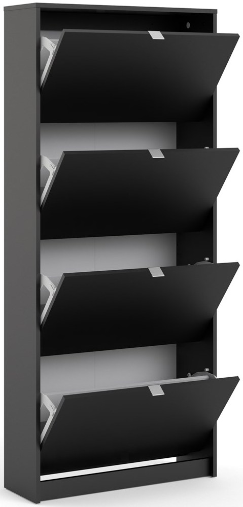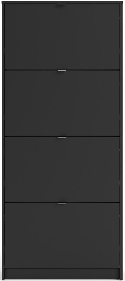 Askepot skoskab mat sort med 4 vippelåger og plads til 24 par sko.