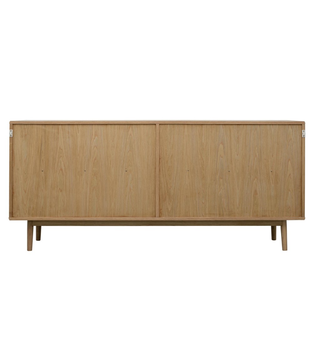 Skænken er 80 cm høj og står på 20 cm solide egetræsben, der giver møblet et let og moderne løft. FSC®-certificerede materialer sikrer, at du vælger en bæredygtig løsning til dit hjem. Perfekt til stuen, spisestuen eller entréen.