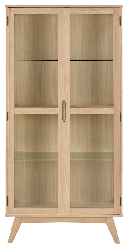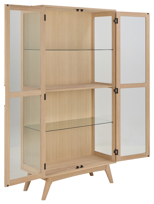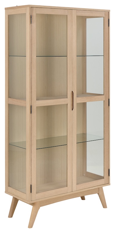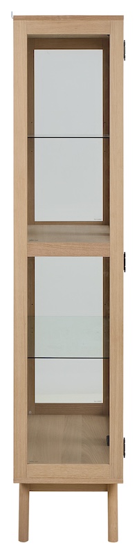 Praktisk vitrineskab i egetræ.