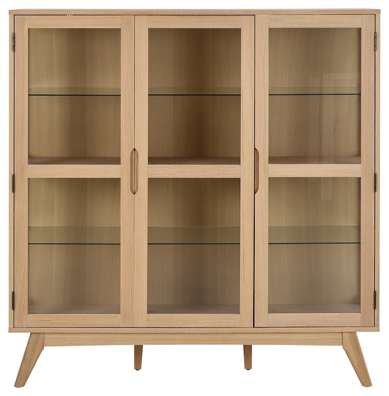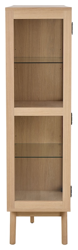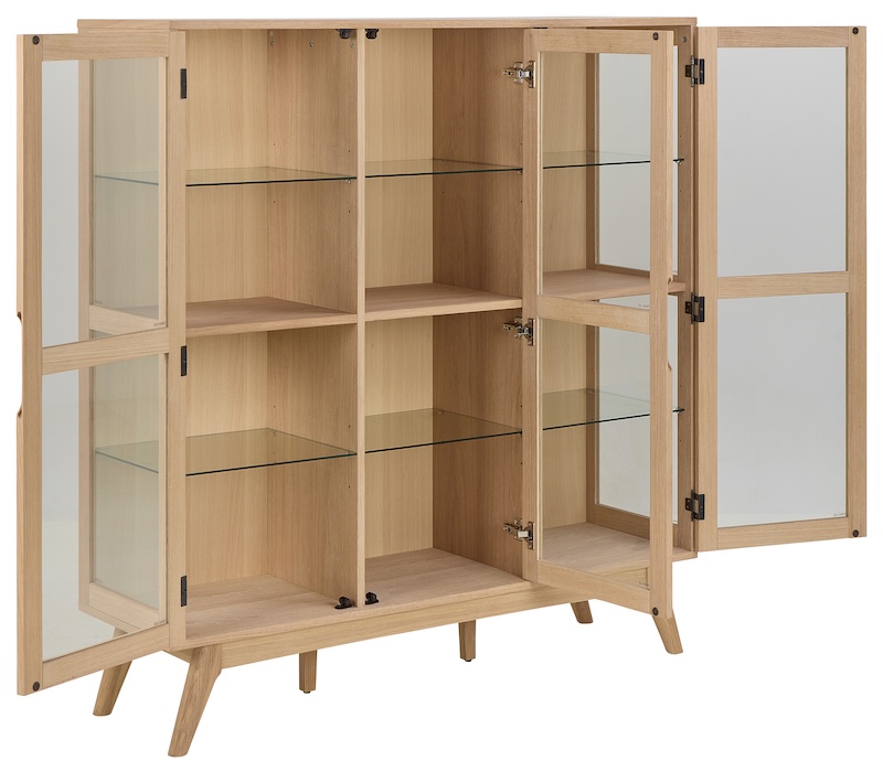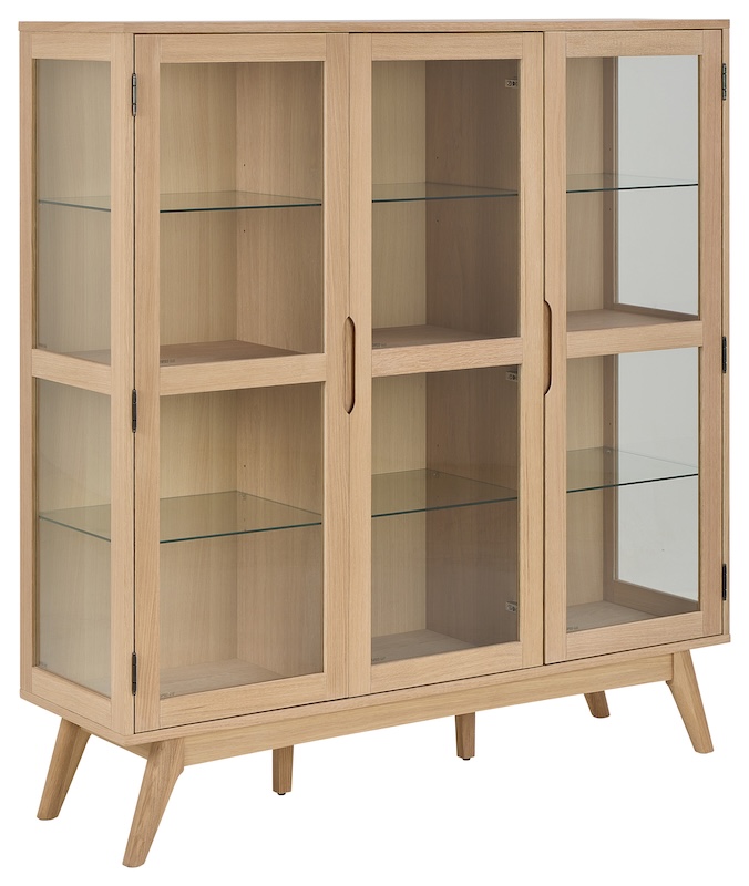 Praktisk vitrineskab i egetræ.