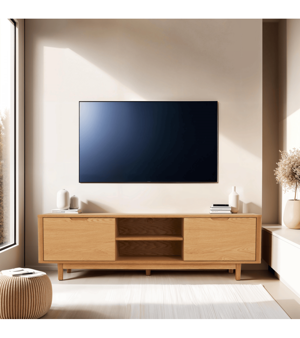 Tåsinge TV-bord i hvidolieret ege finér 180 x 45 cm, låger med soft close og ledningsudtræk