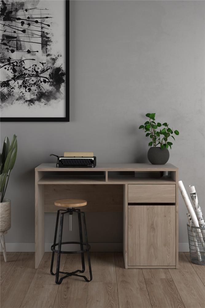 Prestige skrivebord 110 x 48 cm med 1 låge og 1 skuffe i egelook