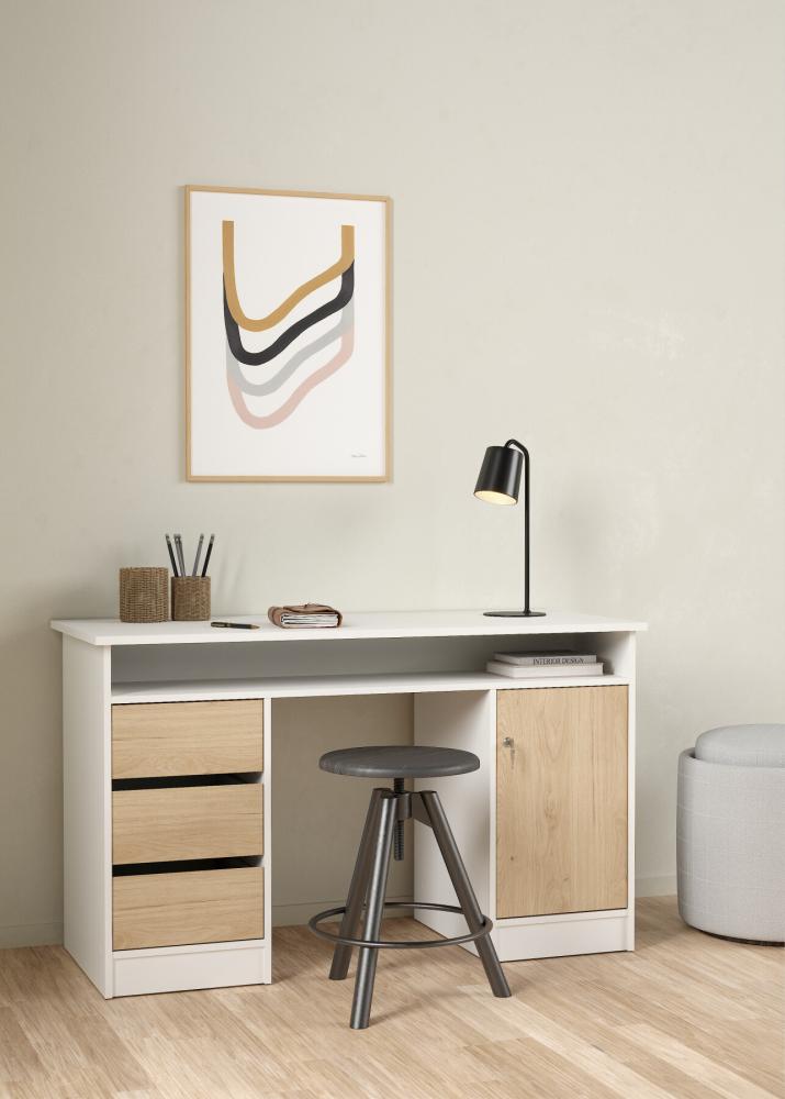 Prestige skrivebord 126 x 55 cm med 1 låge og 3 skuffer egelook med sort