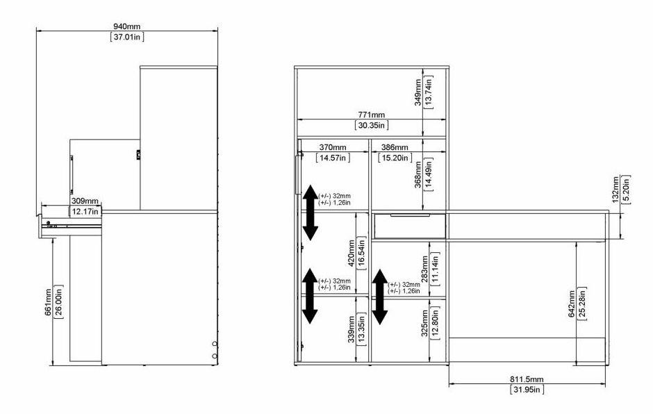- Opbevaringsreolen har 4 åbne rum og et rummeligt skab med 2 justerbare hylder.