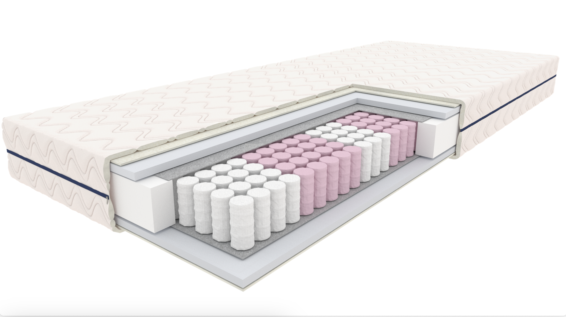 Komfortskum øverst og nederst (2 cm) giver en blød og behagelig liggeflade