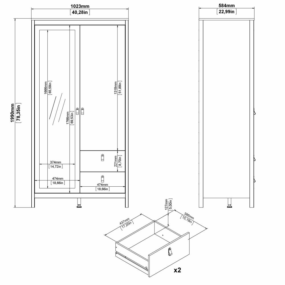 - Bredde 102 x Dybde 58,4 x Højde 199 cm