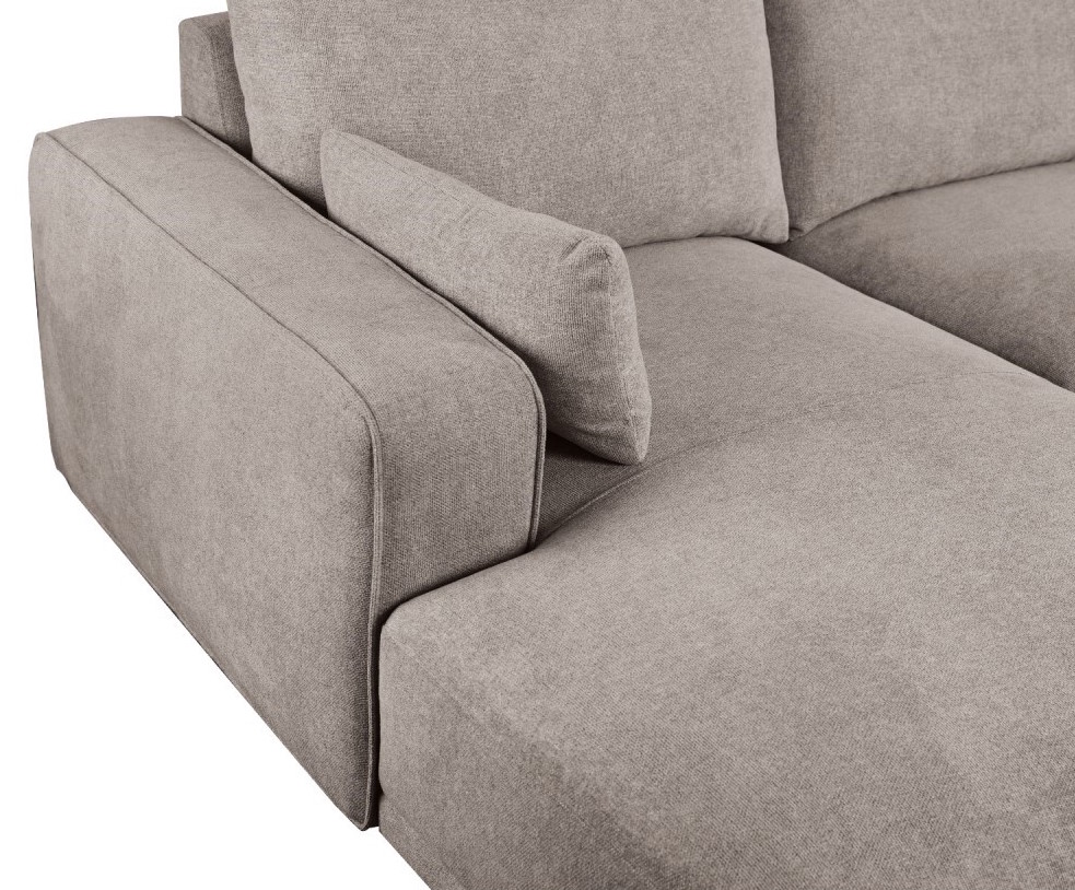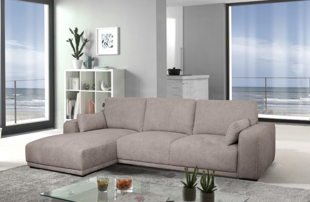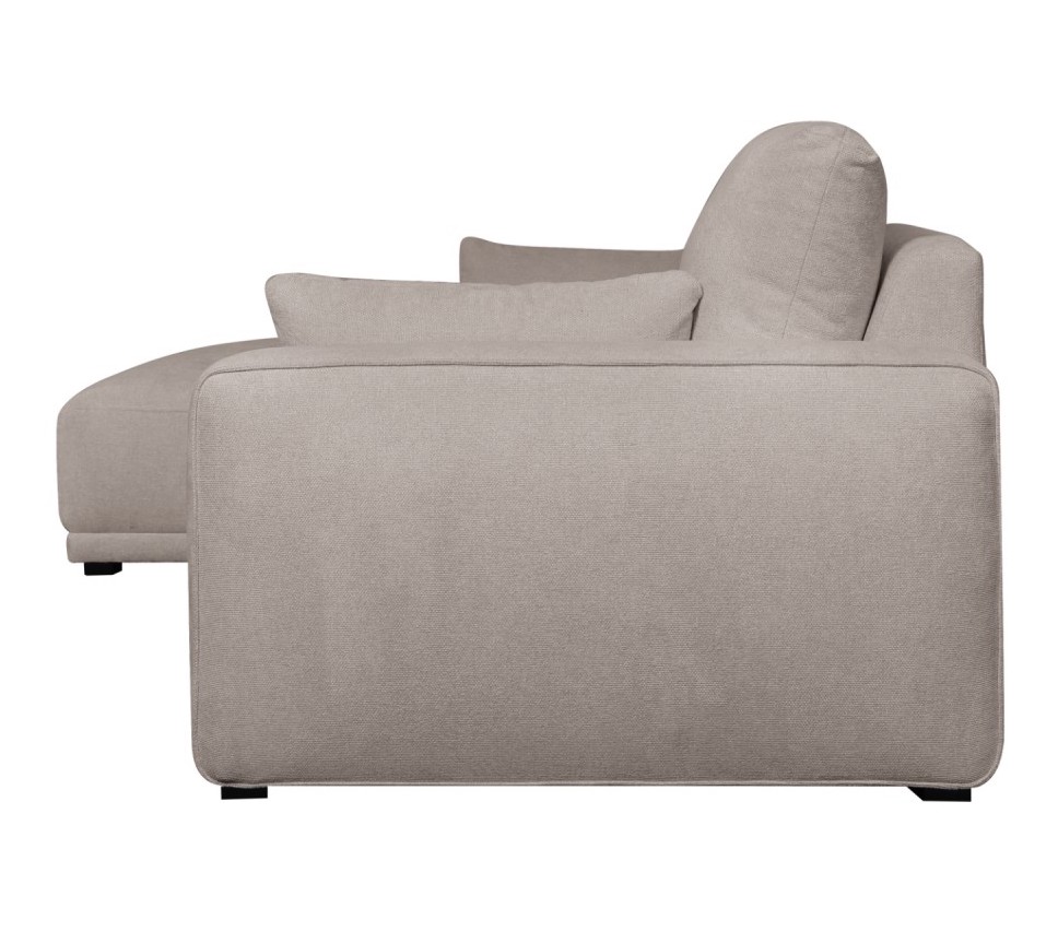 Santa Monica sofa med chaiselong til venstre i sandfarvet møbelstof med plads til 3 - 4 personer.