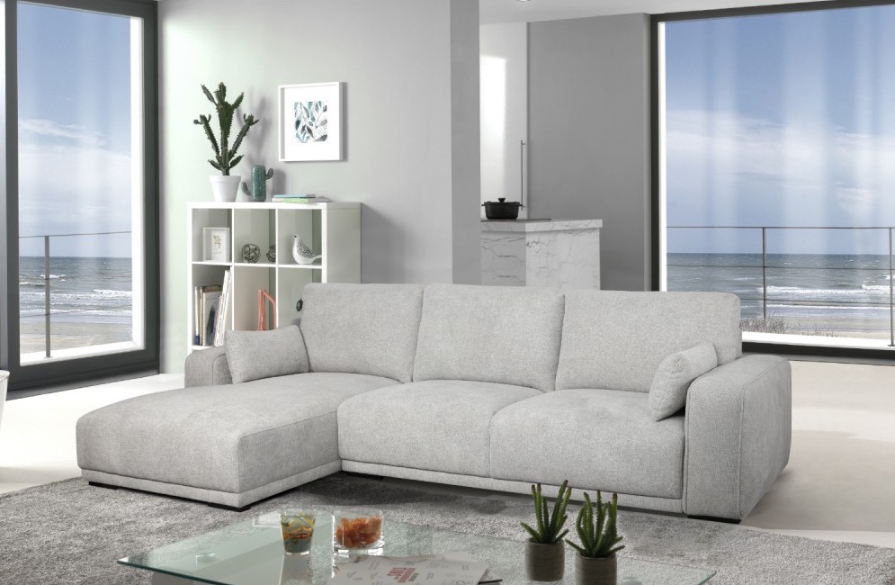 Santa Monica sofa med chaiselong til venstre i gråt møbelstof med plads til 3 - 4 personer.