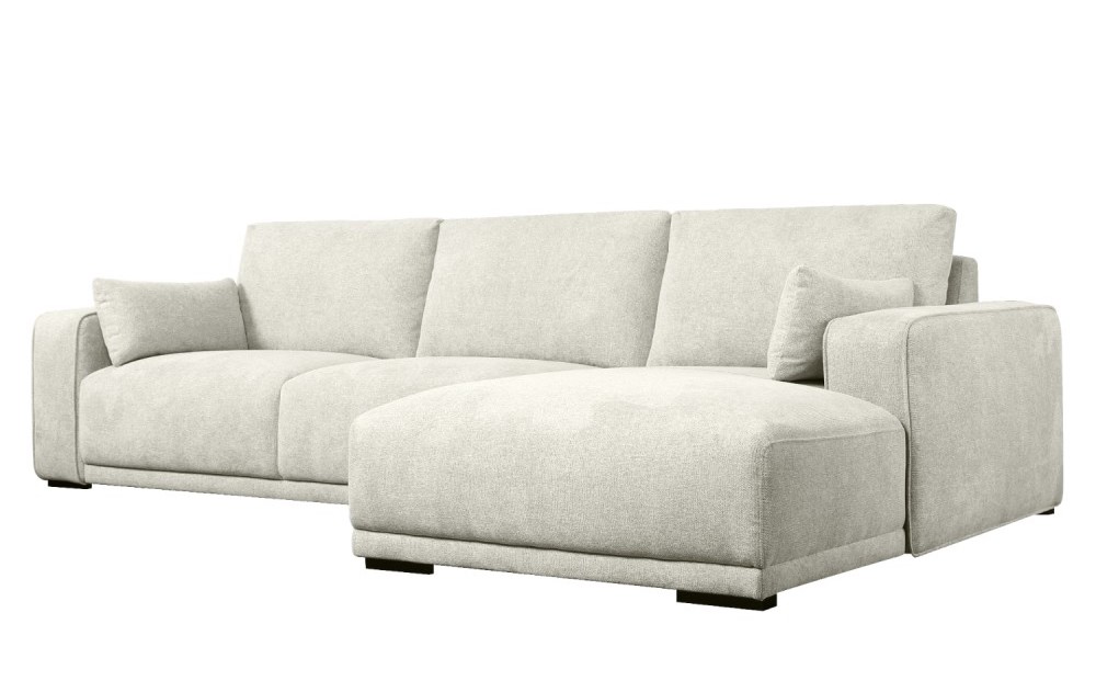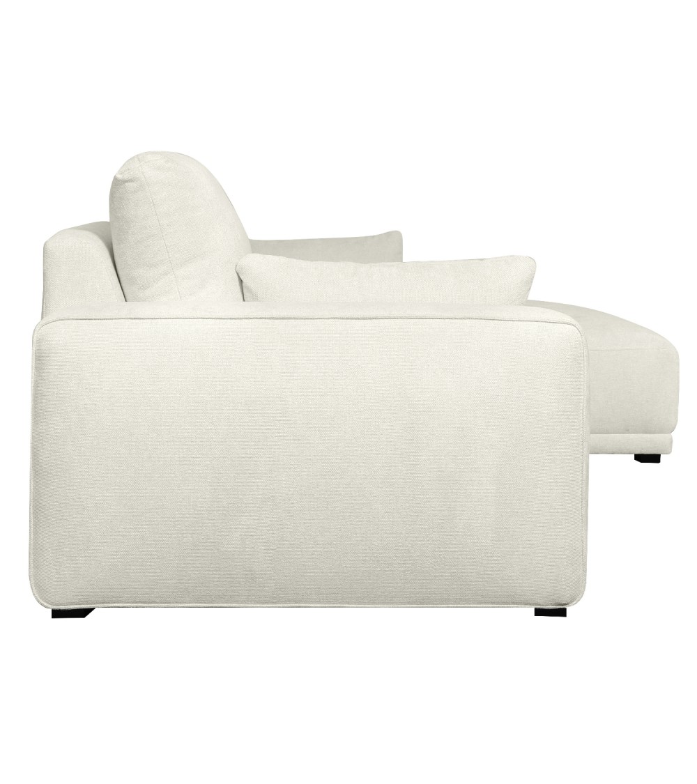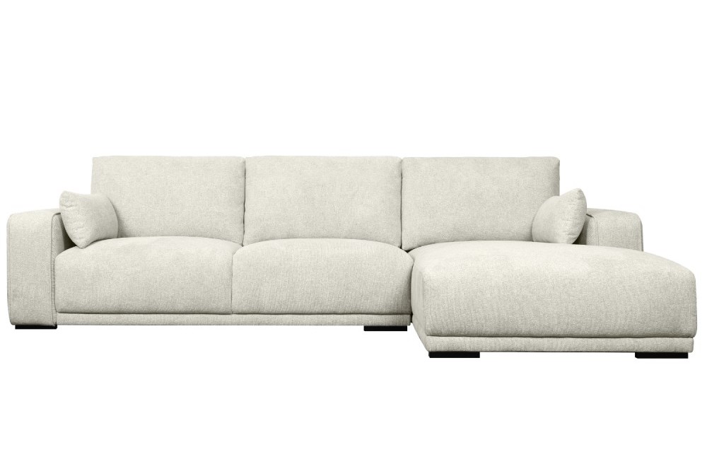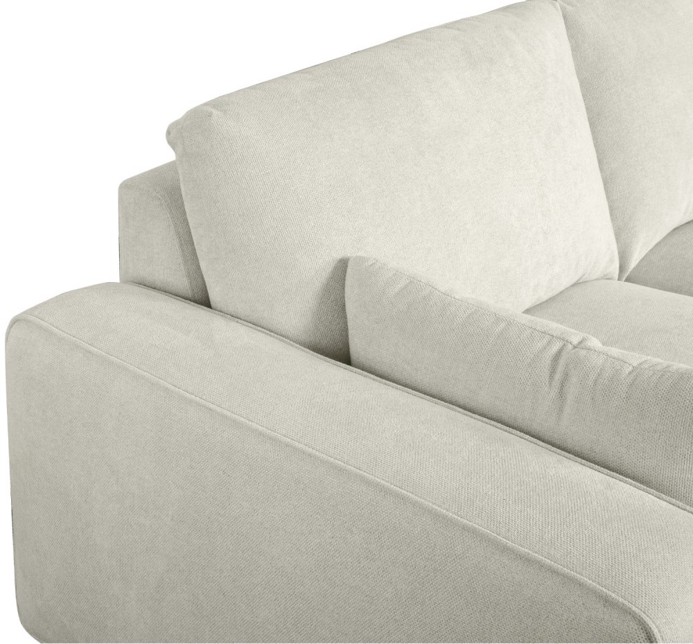 Santa Monica sofa med chaiselong til højre i cremefarvet møbelstof med plads til 3 - 4 personer.