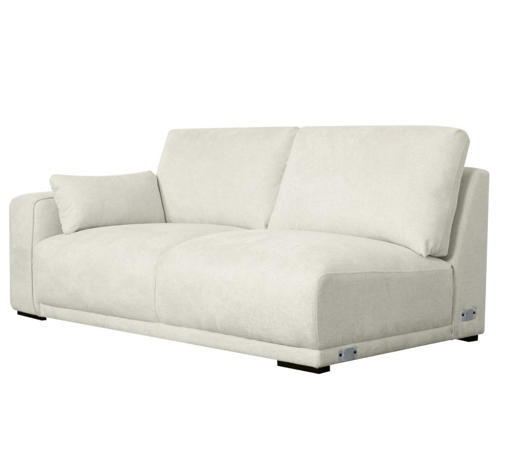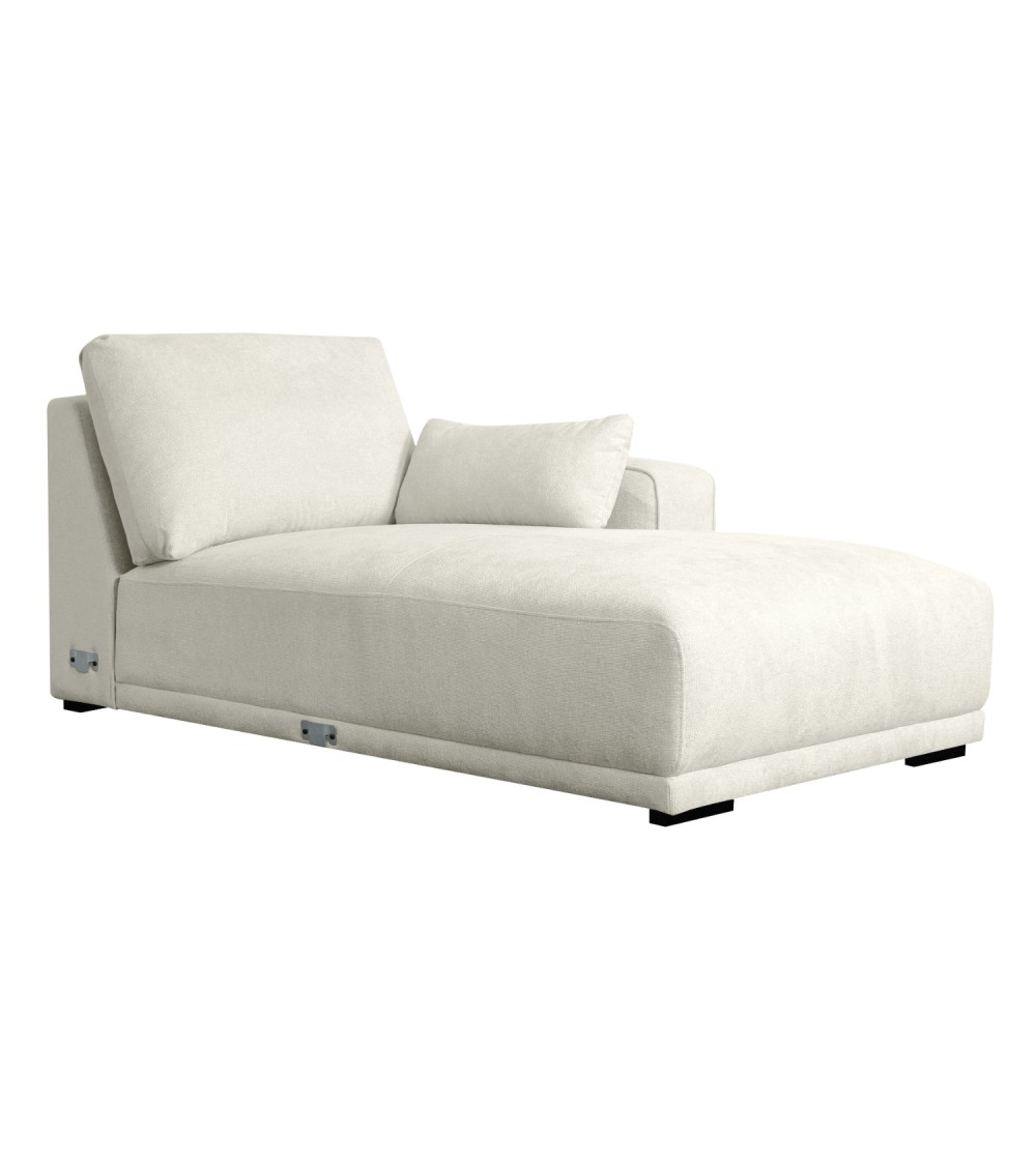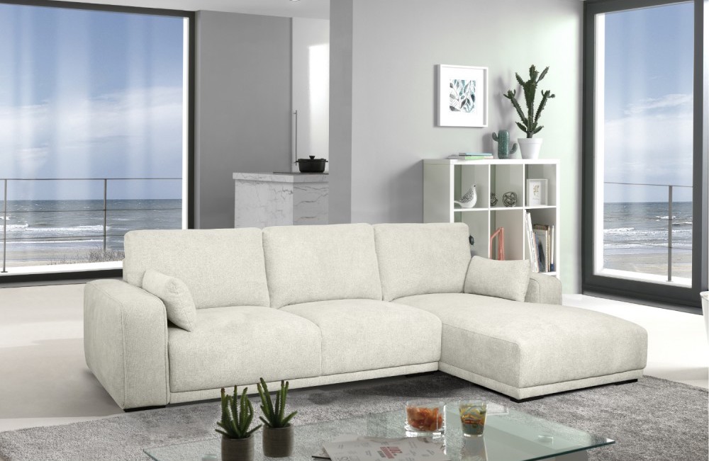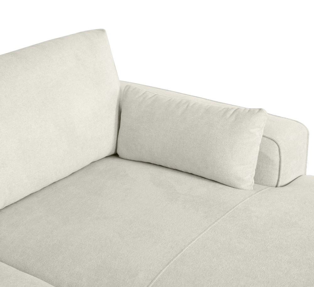 Santa Monica sofa med chaiselong til højre i cremefarvet møbelstof med plads til 3 - 4 personer.