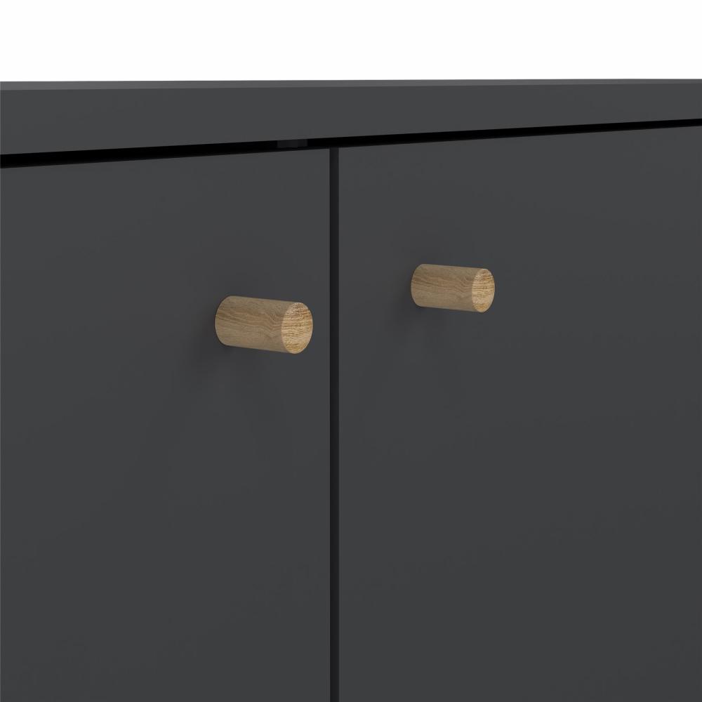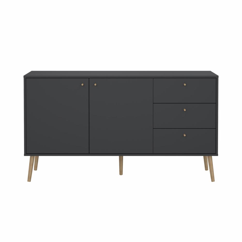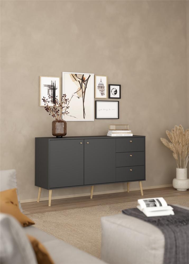 Esbjerg-skænken er et alsidigt og tidløst møbel, der kan forbedre forskellige rum i dit hjem, herunder stuen, entréen og meget mere. Den har to låger, to justerbare hylder og tre skuffer, hvilket giver rigelig opbevaringsplads til at holde dine ting organiseret. Derudover gør den rummelige bordplade det nemt at udstille dine yndlingsgenstande.