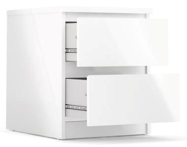 Nibe 40 cm bredt natbord i hvid højglans med 2 praktiske skuffer. Skufferne er monteret med letløbende metalskinner, så du har nemt ved at åbne og lukke skufferne, selv når de er fyldt godt op.